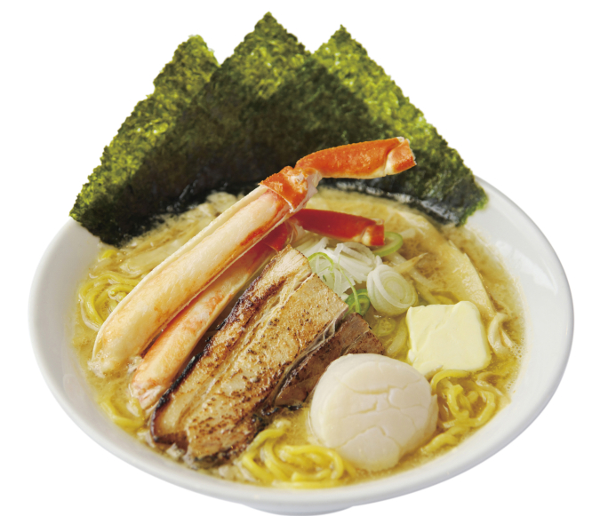 人気の味噌ラーメンにズワイガニ、帆立を豪快にトッピング。北海道バターを溶かしながら味わって。