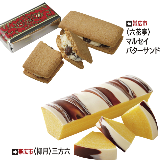 ほかにも、大人気の『ロイズ』の商品各種、『六花亭』の『マルセイバターサンド』(831円)、『柳月』の『三方六』(1本700円)、『北菓楼』の『北海道開拓おかき』(491円~)などなど、北海道土産の定番たちも揃いますよ。