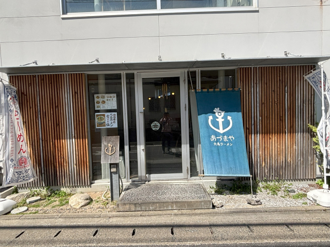 地下鉄七隈線・六本松駅から徒歩5分。青いのれんが目印の『大島ラーメン あづまや 福岡』は、店主の祖父から50年以上続く長崎・西海市の老舗『あづまや』の姉妹店として、2017年6月にオープンしました。