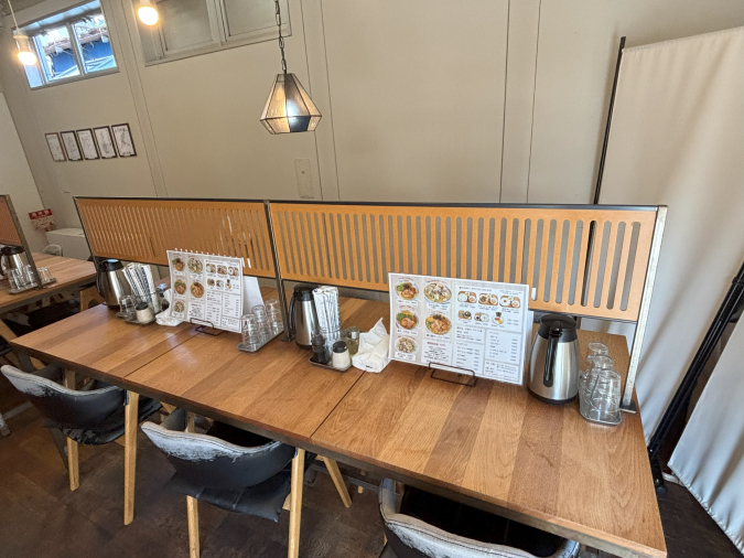 店内はカウンター席とテーブル席があり、木目調で温かみのある雰囲気。女性ひとりでも過ごしやすい空間です。