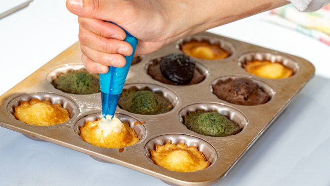注文すると、サクサクのパイ生地に、ふわとろで上品な甘さのカスタードクリームを、その場でたっぷりと詰め込んでもらえます。