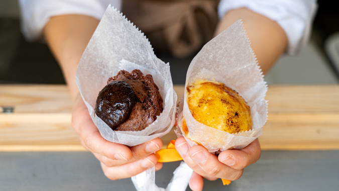 『フォンダン』(270円/写真左)は、表面はサクッと、中はふんわりと焼き上がったチョコマドレーヌの中に、温かく濃厚なチョコソースがたっぷりと入った、満足感のある味わい。