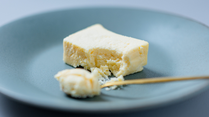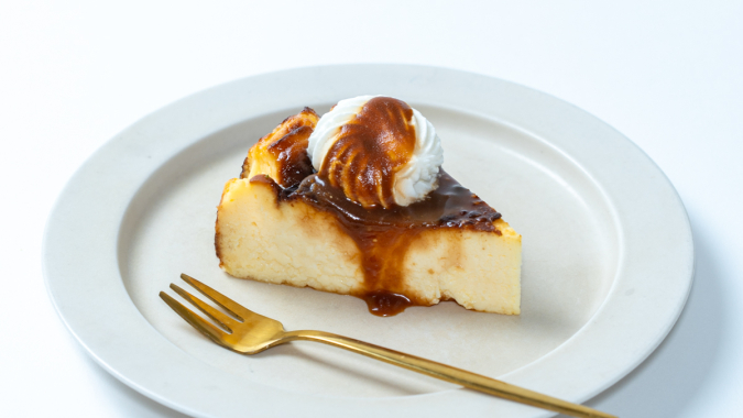 粉類を入れずに、卵とチーズの冷えて固まる性質のみで仕上がったケーキなので、舌の上ですっと溶けていくような、なめらかな食感が楽しめます。