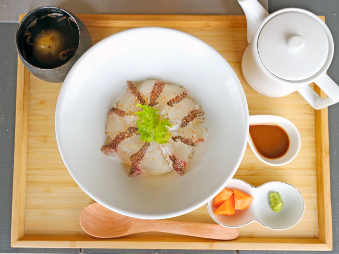 魚の鮮度はもちろん、特製ごまだれ、お米、出汁全てにこだわった鯛茶づけです。