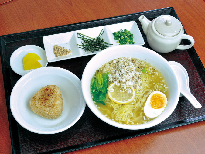 鯛のアラと鶏ガラをブレンドしたスープで作った『鯛塩らーめん』は、玄界灘で獲れた真鯛を使用。しめは『鯛めし焼おにぎり』にスープや出汁をかけて鯛茶づけとして楽しめます。1食で2度おいしい逸品です。