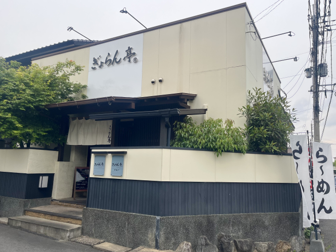 『ぎょらん亭』の創業は1948年。北九州市小倉北区三郎丸にある『本店』をはじめ福岡県内の各店舗には、あの緑色ののれんがかかっていますが、ここは白。日本料理店のような店構えです。