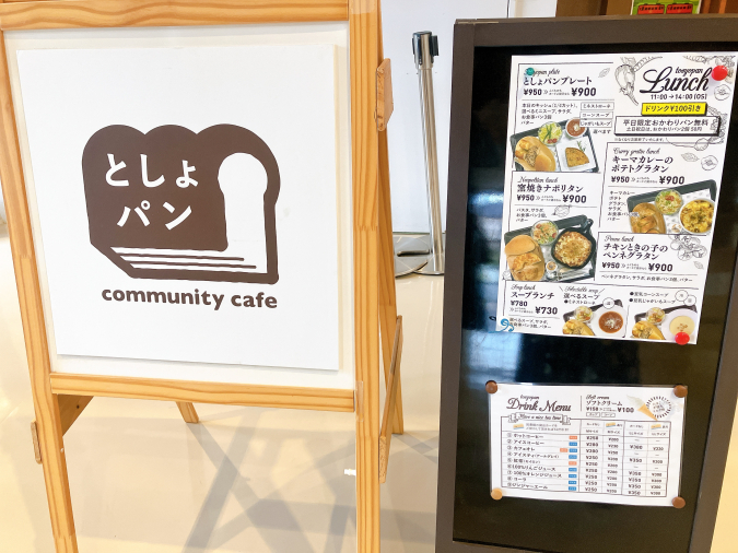 図書館に寄ったついでにパンを購入するもよし、ランチのみ利用するもよし。