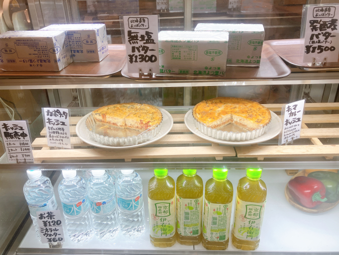 レジ横では、無塩バターや発酵バター、手作りキッシュなども販売。