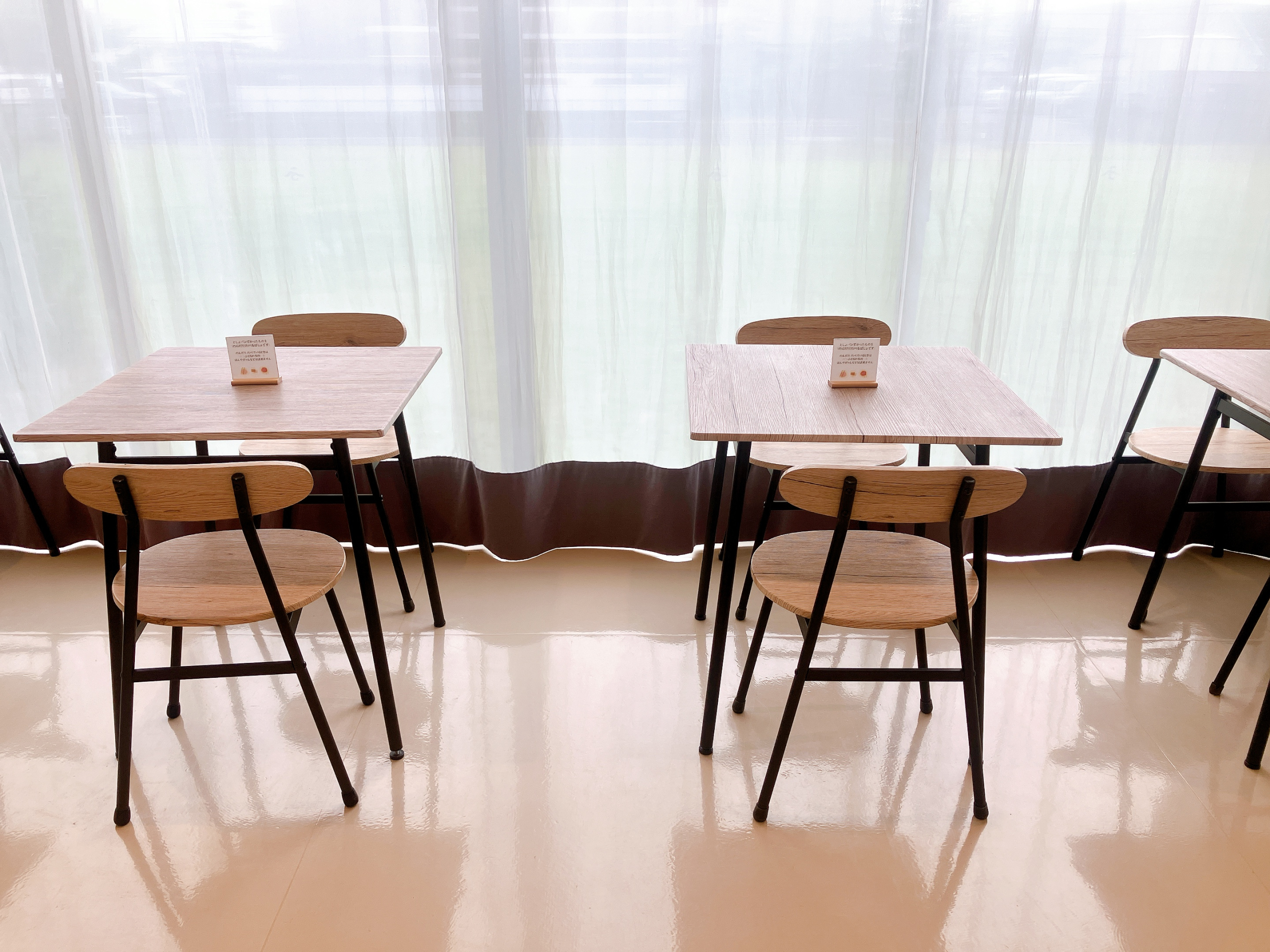 2人掛け・4人掛けのテーブル席があり、購入したパンをすぐに食べることもできますよ。