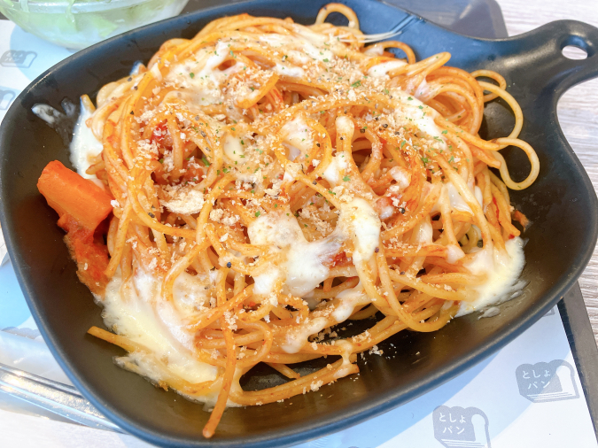 窯で焼いたナポリタンの上にはチーズがたっぷり! にんじん、玉ねぎ、きのこなどの具材がボリューム満点です。