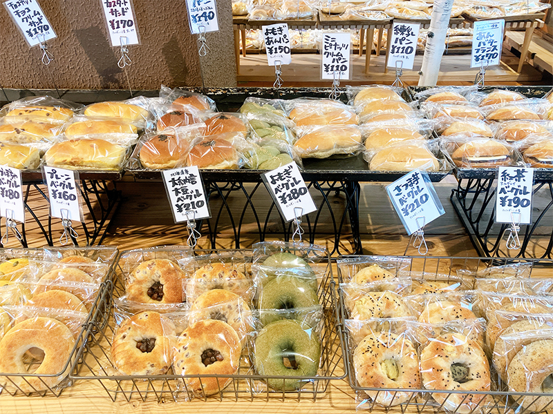 中でも人気があるのは、国産小麦を使った全粒粉入りの『ベーグル』(160円~)。毎日15種類以上とラインナップが豊富です。
