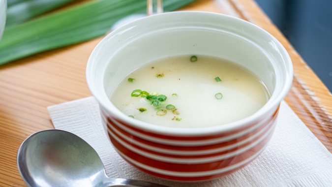 『新じゃがいものスープ』は生クリームやバターを使わず、和風だしをベースに作られていて、とろみがありつつも軽い仕上がり。