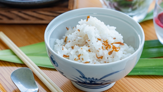 ステーキのおいしさをさらに引き立ててくれるのが、香り豊かな『ちりめん山椒の混ぜご飯』。