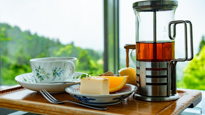 息をのむような絶景に包まれながら、丁寧なおもてなしとともに贅沢なひとときを過ごせる『茶房 わらび野』。