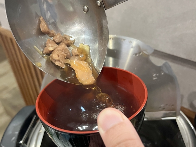 甘めの醤油ベースに、鶏肉の旨みが詰まったやさしい風味。おいしくて何度もおかわりしちゃいました。