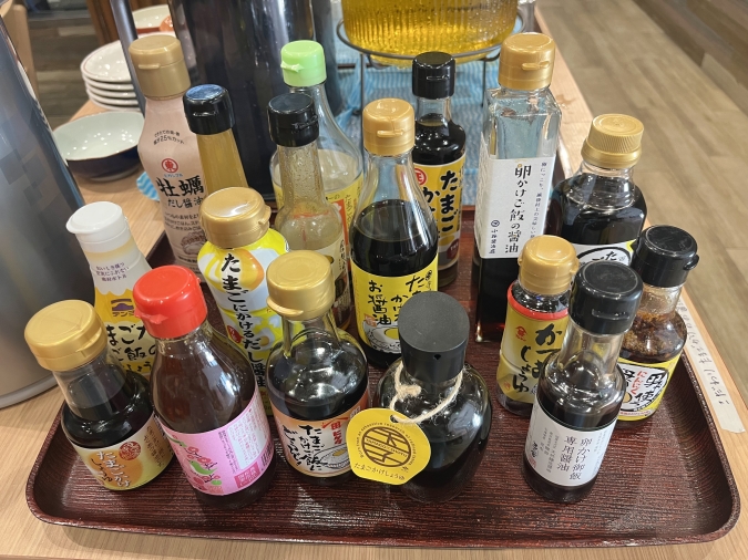 卵かけご飯用の醤油は全国から厳選したこだわりのものを取り揃えているんだそう。