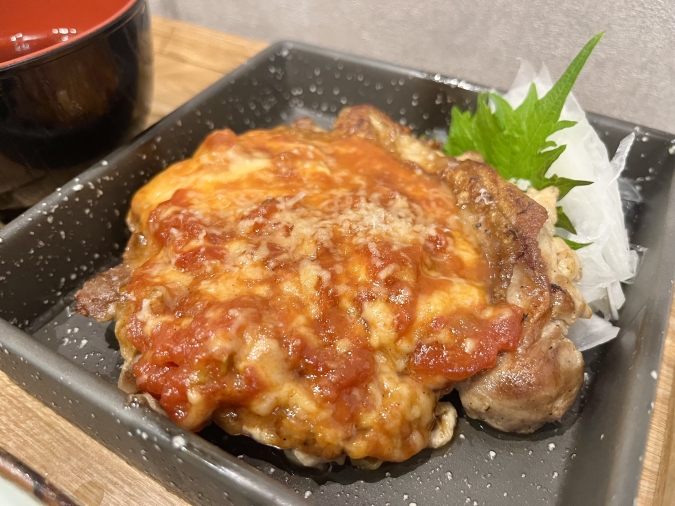 鶏肉は、表面がカリッと焼かれており香ばしさも満点。旨みが凝縮されています。酸味控えめのトマトにとチーズのコクが加わり、口に入れた瞬間、至福のときが訪れますよ。