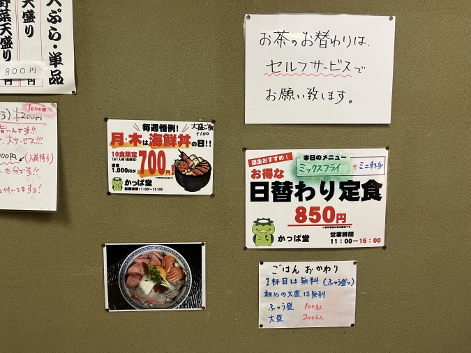 『かっぱ堂』では、曜日によって丼物ランチがお得に楽しめます!