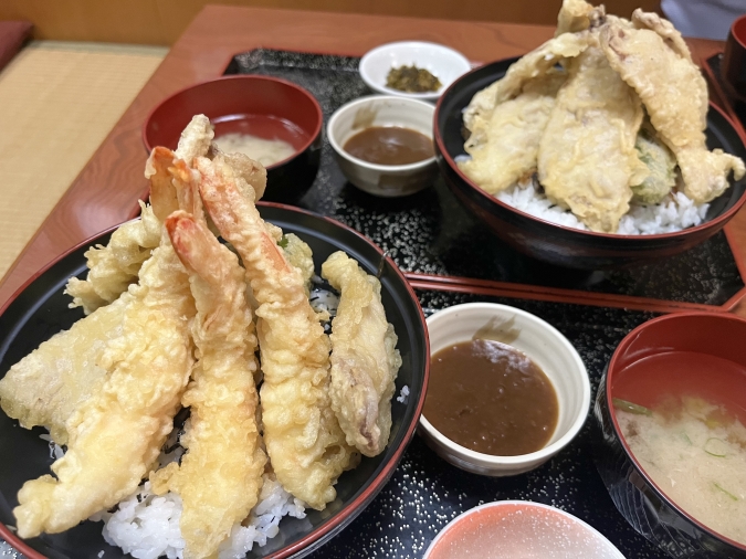今回は、3種類の天丼を注文しました。