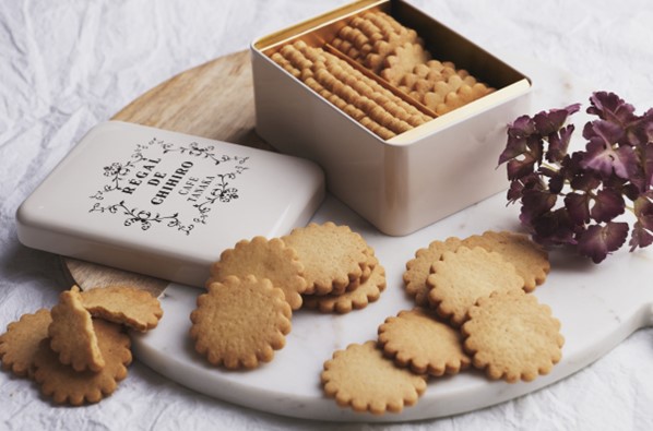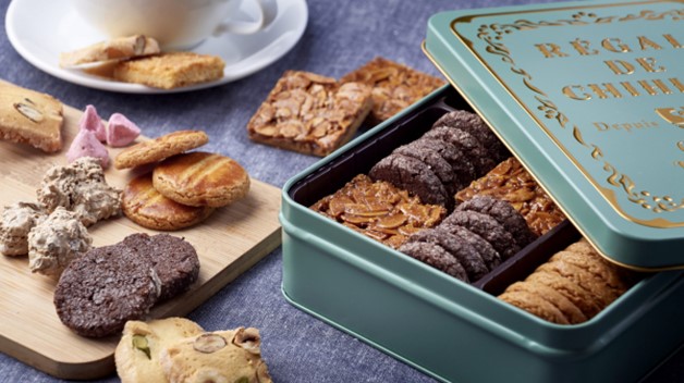 一枚一枚丹念に焼き上げたREGAL(おいしいご馳走)という名を冠したクッキーがたっぷり入った『レガル・ド・チヒロ・シュクレ缶』。