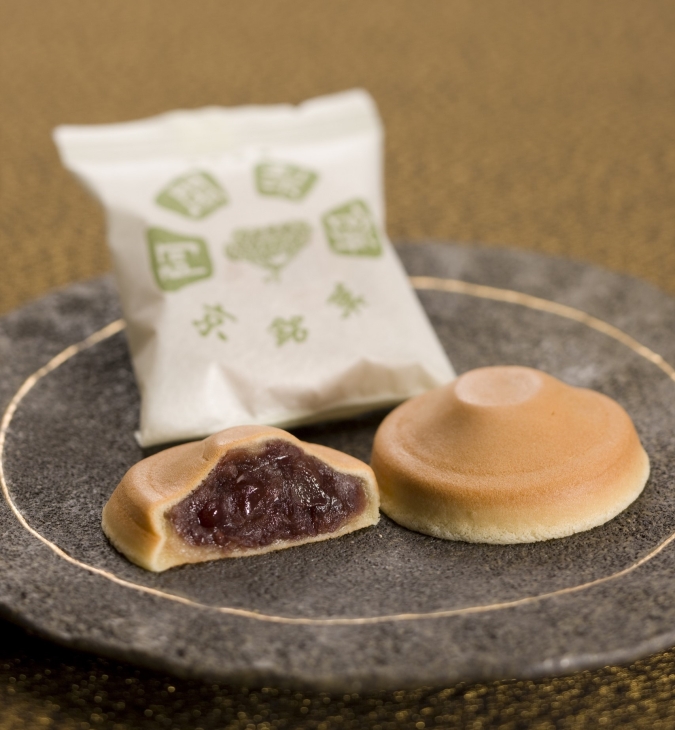 さまざまな素材を練り合わせた満月秘伝の餅生地で、丹波大納言の粒餡を包んで焼き上げた半生菓子 『阿闍梨餅』。
