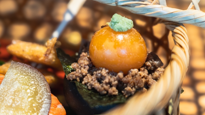 甘辛い味噌仕立てのミンチとの相性も抜群で、有明産の海苔とわさびと合わせることで、品のある味わいに仕上がっています。