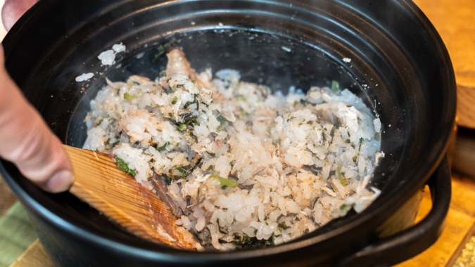 茶碗1〜2杯ほど楽しんだあとは、自家製の“お茶漬け専用”だしをかけて楽しむのがおすすめ。