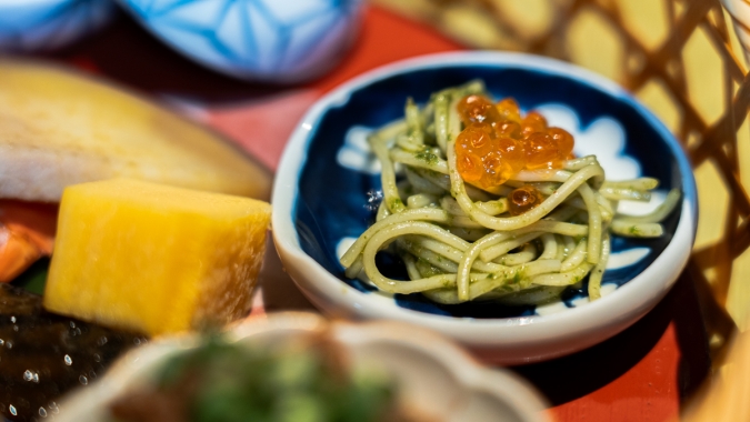やわらかい食感のそうめんに香り豊かなバジルソースといくらのうまみが絡み合う、これからの季節にぴったりなメニューです。