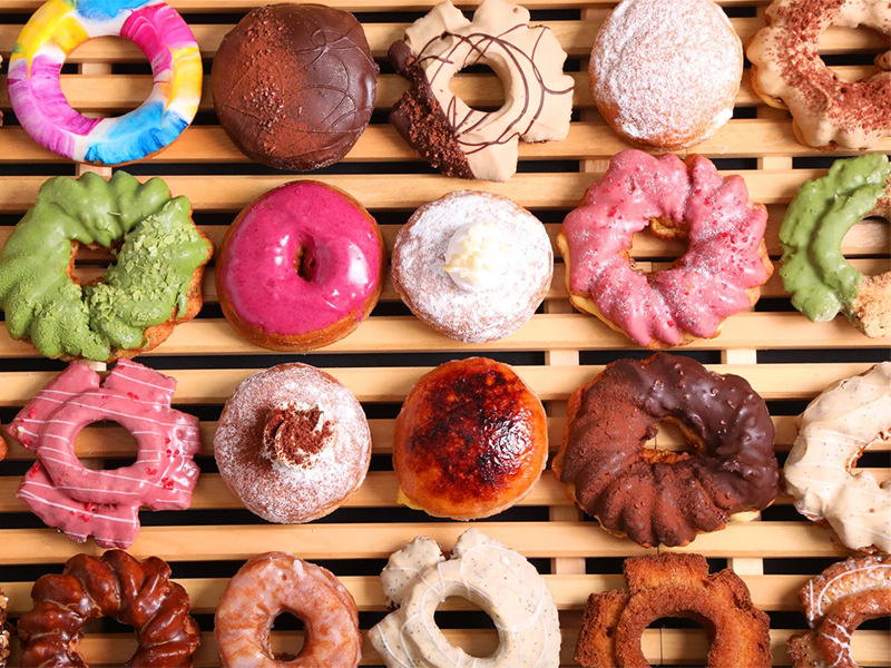 定番ドーナツはもちろん、オランダやフランス、ハワイなど、世界各地のスイーツをイメージしたドーナツや総菜ドーナツなど、多彩なカテゴリーが揃います。味はもちろん、1個100円台後半からのリーズナブルな価格帯と選べる楽しさが人気の秘密。