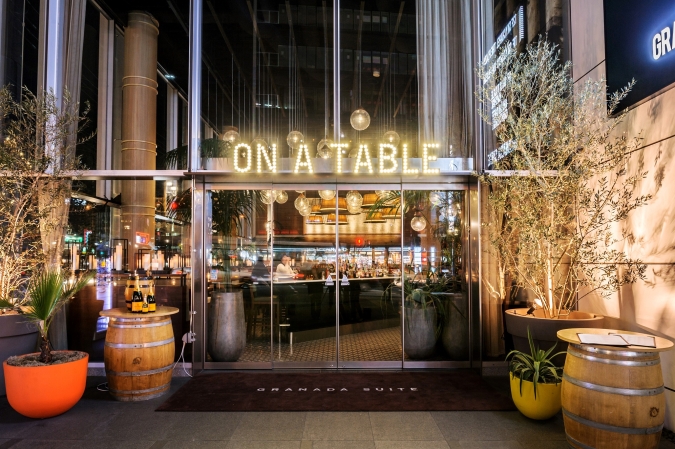 地下鉄空港線/箱崎線・中洲川端駅の2番出口から徒歩1分、明治通り沿いにあるグリルダイニング『GRANADA SUITE on A TABLE(グラナダスィート オン ア ターブル)』。