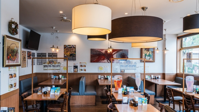 明治通り側の窓際席は、ペットの同伴もOK。愛犬家でもある河野さんの「家族の一員であるペットと気軽に食事できる場所をつくりたい」という想いから生まれた特別席です。