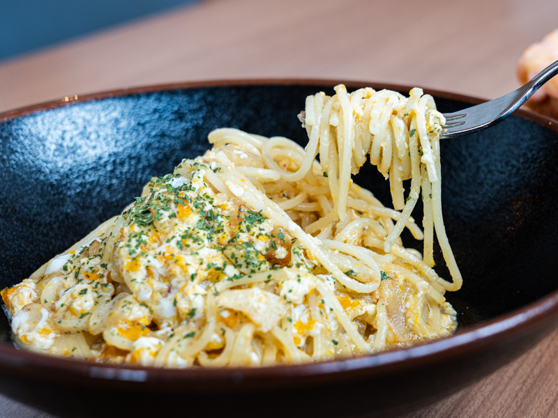火入れ具合を追求した卵のふわとろ感は、ほかの卵系パスタでは味わえない唯一無二の仕上がりです。