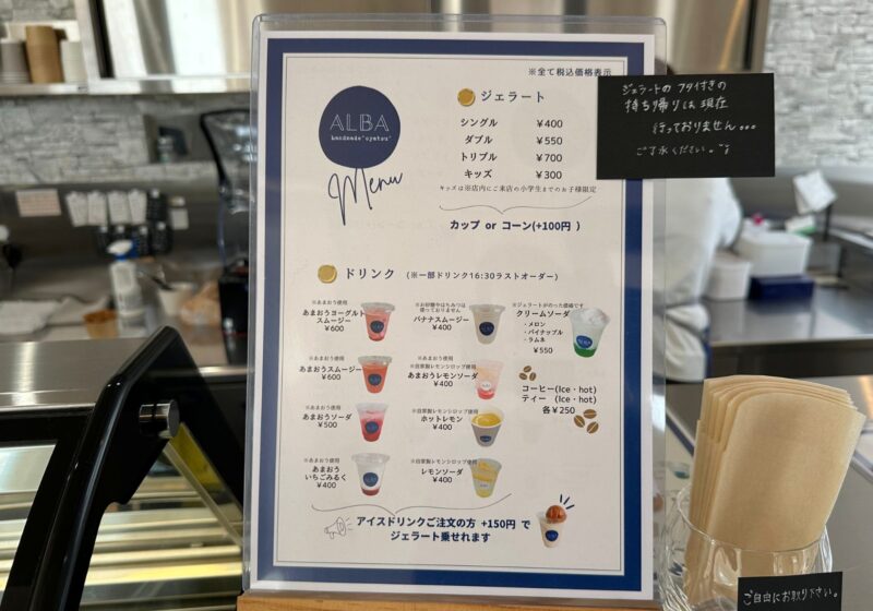 スムージーなどのドリンクやキッズジェラートもあるようです。ご家族で行くのもいいですね。