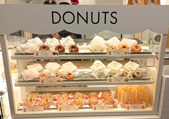 ショーケースにいっぱい並んでいるドーナツを見ただけでワクワク。見た目もかわいくて、100円台という良心的な価格はうれしいですね!