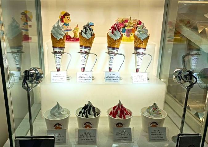 ショッピングの合間のおやつやバスを待っている間にもオススメなのが『プレミアムmilkyソフトクリーム』(ワッフルコーン 480円・カップ 430円)。