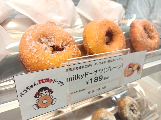 このお店では、大きく分けて3種類、『milkyドーナツ』(189円)、『milkyクリームドーナツ』(199円)、『milkyボールドーナツ』(230円)が販売されています。