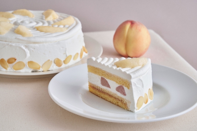甘くとろける果実とほどよい酸味のレアチーズクリームが、絶妙なハーモニーを織りなします。リッチで華やかな、桃が主役のごほうびケーキです。