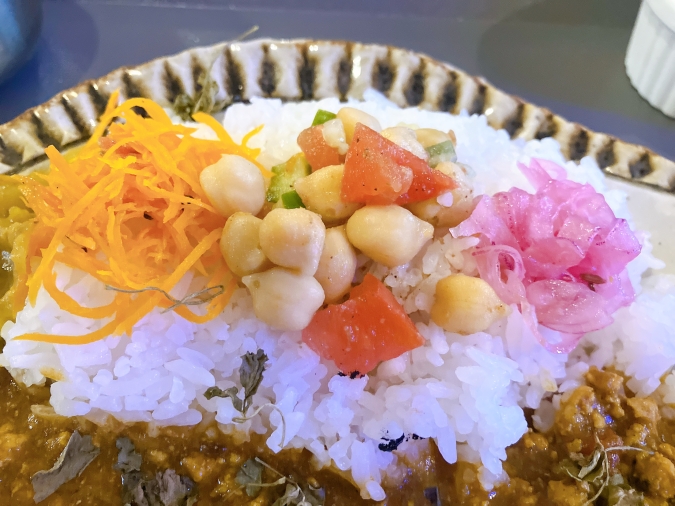 カレーは『チキンカレー』『牛すじカレー』『キーマカレー』『ケララチキンカレー』の4種類から選べます。今回は『キーマカレー』をチョイスしました。ご飯は+100円で大盛りも可能です(小盛りは±0円)。