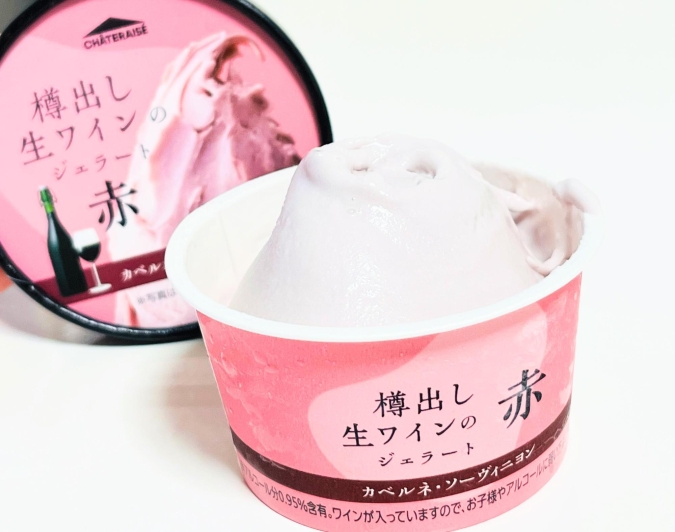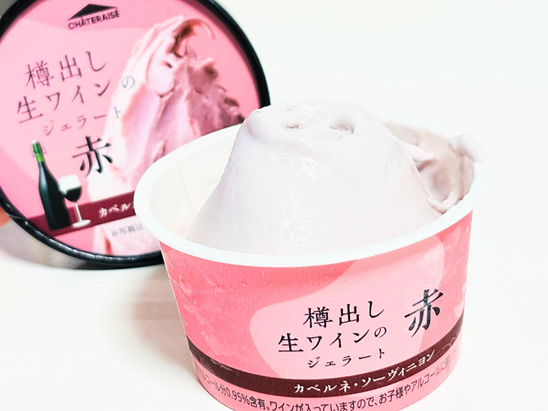 その名も『樽出し生ワインのジェラート 赤 カベルネ・ソーヴィニヨン』。※アルコール(0.95%)が含まれているため、お子様やアルコールに弱い方はご注意ください。