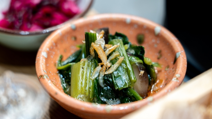 日替わりの小鉢4種は、旬の野菜を中心にご飯に合うイメージで仕上げられていて、『小松菜のおひたし』は出汁の味がぐっと引き立つ上品な味わい。