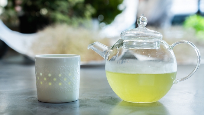 食後は八女市の老舗『中島製茶本舗』の冷たい八女茶でほっと一息。