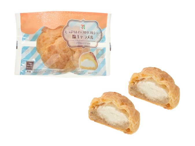 塩とキャラメルの絶妙なバランスを追求した『たっぷりホイップのダブルシュー 塩キャラメル』(237.60円 ※東北は2025年7月9日(水)より順次発売)。たっぷりの軽やかなホイップクリームと塩キャラメルクリームの組み合わせが、暑い夏の日でもつい食べ進めてしまう、やみつきになる味わいです。