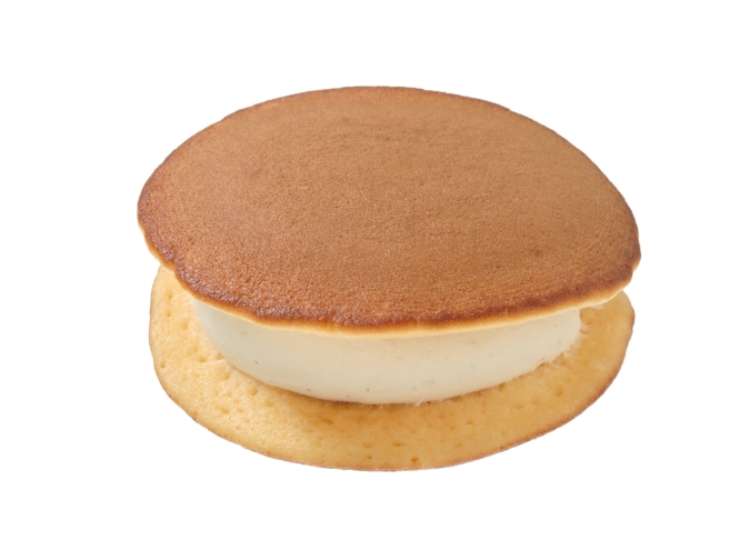 『ホイップどら焼 塩バニラ』(205.20円)は、2025年7月8日(火)より順次発売。どら焼き生地で、甘じょっぱい塩バニラホイップをたっぷりサンドしています。