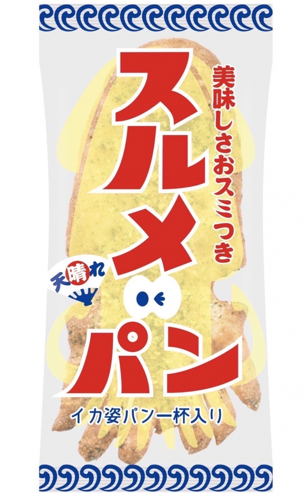 さきいか、チーズ入りの生地にあおさをトッピング。かわいいするめの形をしたパンです。
