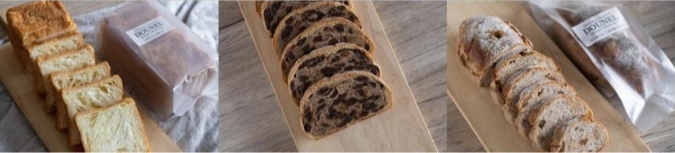 岩手県【DOUNEL(ドーネル)】「デニッシュ食パン プレーン」(880円)、「ライ麦スライスレーズン」(280円)、「ライ麦パンくるみ&いちじく」(680円)