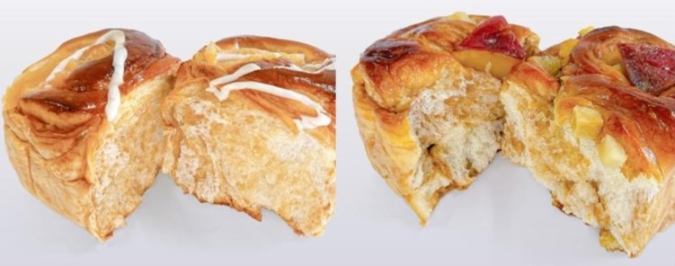 サクッとしたビスケット生地と柔らかい菓子パン生地の中に、自家製クリームがたっぷり入っています。