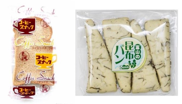 富山県【さわや食品】「コーヒースナック」(240円)、「昆布パン」(280円)