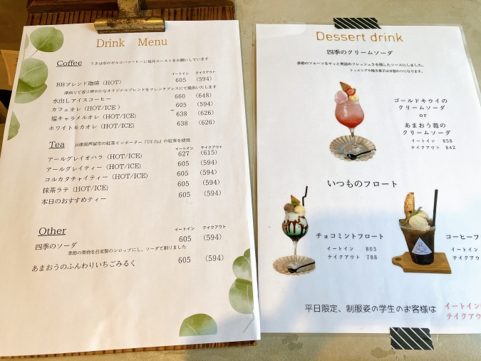 豊富なのはスイーツだけではありません。12種類のドリンクと3種類のデザートドリンクがあり、すべてテイクアウトも可能です。