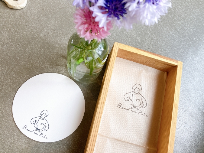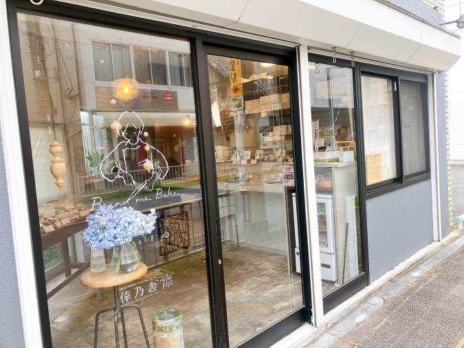 ガラス張りの入口にはお店のロゴであるかわいいイラストが♡ 『B and me Bake』の“d”がボウルに繋がっていて、オーナーの「私とお客様と地域がしっかりと繋がるお店にしたい」という想いをロゴで表現しているそうです。