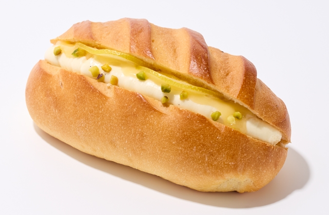特製レモンカスタードを包み、メロン皮をのせて焼き上げた子どもにも人気の商品です。シロップ漬けのレモンスライスがアクセントになっており、見た目もキュート。